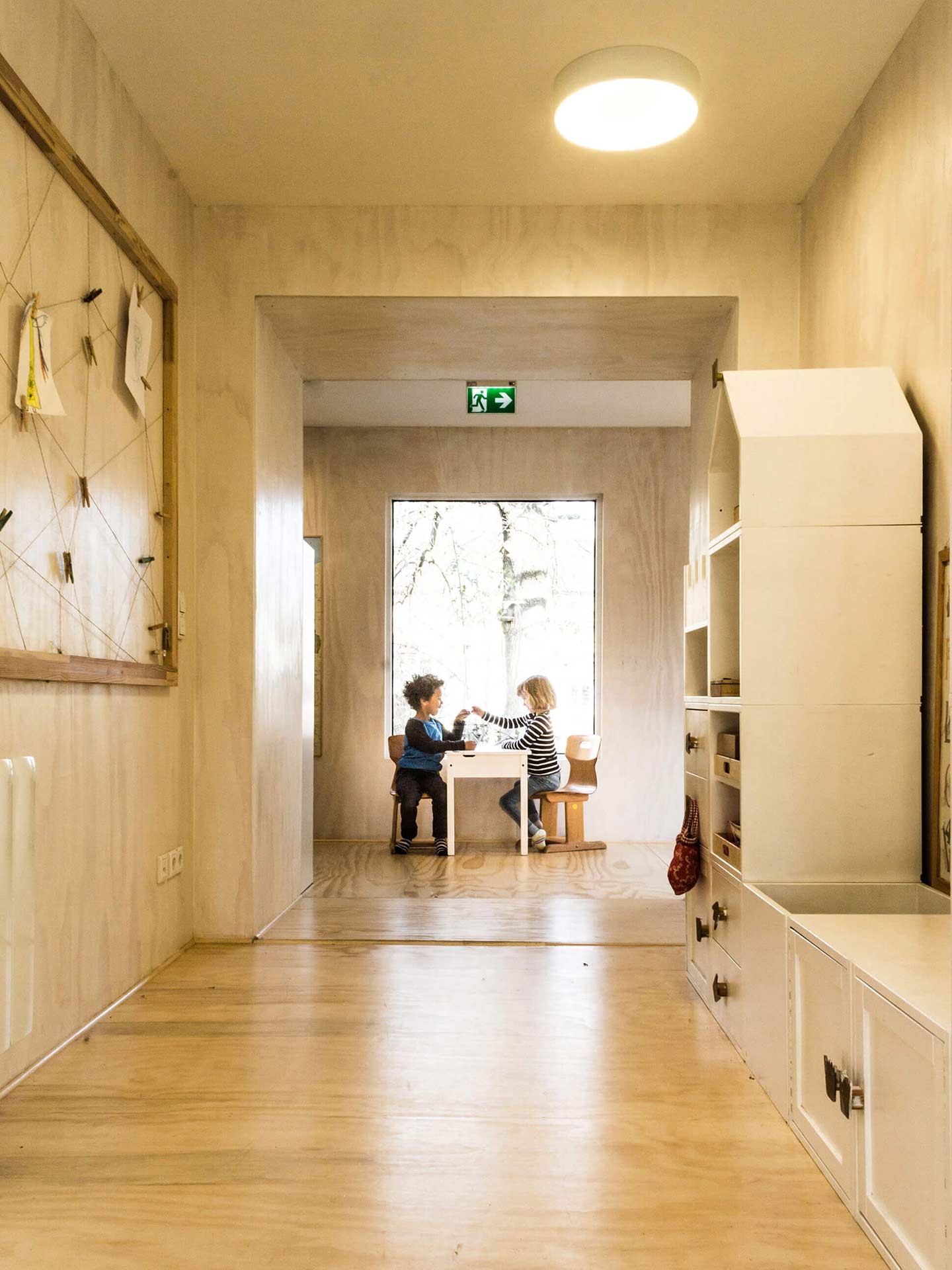 Die Riesenklein gGmbH wächst und hat akuten Platzbedarf! Aber spätestens in drei Jahren steht ein Umzug in ein größeres Haus an. Gemeinsam mit dem Riesenklein – Team und den Kindern haben wir temporäre, modulare Raumlösungen erarbeitet. Entstanden ist ein Ensemble aus vier Hochseecontainern. Diese sind aneinandergekoppelt, versetzt positioniert und mit dem Haupthaus verbunden. Der so konzipierte Raum bietet abgeschlossene Bereiche, Nischen und Durchgänge. Er entspricht unterschiedlichsten Bedürfnissen der Raumnutzung. Auch der Außenraum erhält eine wirksame räumliche Modellierung.